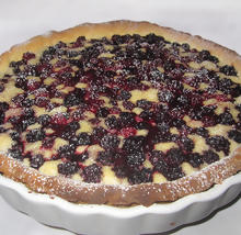 Garnir le fond de pâte refroidi de cette crème, disposer les mûres sur la crème en les enfonçant un peu.